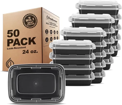 Mantente en forma y saludable: disfruta de deliciosas comidas caseras en todas partes con los recipientes #1 de preparación de comidas de Freshware. ¿Estás cansado de gastar dinero en comprar alimentos poco saludables preparados? Conoce las mejores cajas Bento, tu nuevo mejor amigo en la cocina. Con 1 espacioso compartimento de diferentes tamaños, puedes utilizar este juego de 50 loncheras inteligentes para varios aperitivos sin que se mezclen todos. ¡Tu comida se verá y sabrá genial todo el día! Proporciónate a ti y a tu familia una comida decente de porciones controladas con plato principal, ensalada e incluso postre, todo muy bien empaquetado en esta lonchera súper conveniente. Calidad suprema y diseño reflexivo combinados. Hecho exclusivamente de polipropileno 100% seguro para alimentos, BPA, PVC y ftalatos, estos recipientes de plástico reutilizables son la opción más segura que puedes hacer. Gracias a su calidad inigualable puedes: ✅ Preparar más comidas con anticipación y congelarlas para los días ajetreados en los que no tendrá tiempo para cocinar. ✅ Microondas para disfrutar de una deliciosa comida caliente. ✅ Límpialos sin complicaciones en el lavavajillas. Tamaño de la caja: 7.8 x 5.3 x 1.8 pulgadas. Volumen: 24 oz. Tamaño de la tapa: 7.8 x 5.3 x 0.6 pulgadas. Paquete de 50 tapas herméticas y recipientes de frescura. Estos recipientes de almacenamiento de alimentos para preparación de comidas son una gran alternativa a los costosos recipientes de plástico. Perfecto para loncheras para adultos, caja de comida para el trabajo, mientras que son muy recomendadas por la mayoría de los expertos en fitness para preparar comidas. CONSIGUE CON CONFIANZA: Freshware te ofrece su política de reemplazo o reembolso GRATIS. Esa es nuestra promesa! Comencemos tu estilo de vida saludable agregando los mejores recipientes de preparación de comidas de FRESHWARE a tu carrito hoy