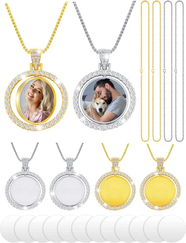Método de uso simple: estos accesorios de sublimación son fáciles de usar, y los discos de sublimación pueden soportar temperaturas de 200 grados Celsius durante unos 60 a 75 segundos, adecuados para máquina de prensa de calor, sin pasos complicados, ahorrando tiempo y esfuerzo Diseño de doble cara: el colgante circular para hacer joyas tiene un diseño de doble cara, cómodo de usar en ambos lados, y te permite sublimar muchos patrones en su superficie, como palabras, personajes de dibujos animados, fotos de mascotas, fotos familiares y más, lo que te proporciona comodidad cuando lo utilizas Fiables y de larga duración: hechos de aleación y diamantes de imitación, los dijes de colgante en blanco de doble cara son duros y sólidos, lo suficientemente firmes para usar durante mucho tiempo, exquisita mano de obra que los hace confiables en calidad, brillantes y elegantes, no se deforman, rompen o decoloran fácilmente, puedes usarlos con facilidad y confianza Combinación agradable para ti: recibirás 6 piezas de bandejas de bisel de diamantes de imitación redondas, 6 piezas de cadenas gruesas y 12 piezas de hojas de aluminio para sublimación, 24 piezas en total, útiles para tus proyectos de bricolaje en la vida diaria, suficientes para reemplazar y compartir con otros Amplios usos para aplicar: estos colgantes para collares se pueden aplicar en muchos lugares, puedes hacer algunos collares, pulseras, colgantes de teléfono, colgantes de llave u otros accesorios; también puedes compartirlos con tus amigos cercanos, familiares, seres queridos y más en cumpleaños y vacaciones de Navidad