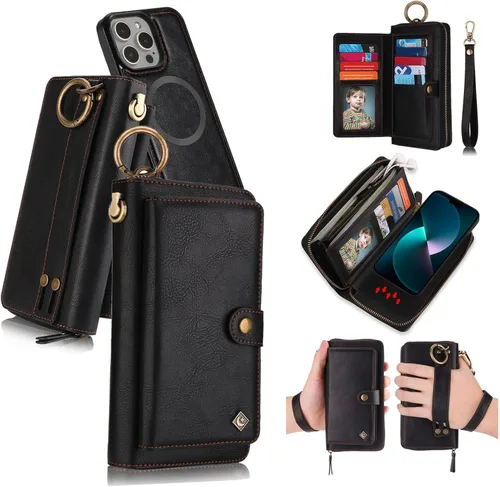 Hecho de piel sintética suave, sensación cómoda al tacto. Funda magnética desmontable para teléfono compatible con carga inalámbrica. Soporte para tarjetas con bloqueo RFID.
