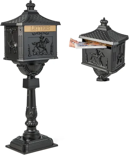 Construcción resistente: el buzón con bloqueo Giantex está fabricado con 100% aluminio fundido, que se caracteriza por su alta resistencia, resistencia a la corrosión y resistencia al agua, lo que garantiza un uso exterior prolongado También puede aumentar el brillo de la apariencia. Bloqueo de seguridad: el buzón con cerradura está equipado con 2 llaves para mantener el correo seguro, y adopta una innovadora puerta deflectora para aceptar cartas, que es fácil de usar. Tenga en cuenta: el buzón sin bandera roja solo puede recibir cartas y no puede enviarlas por correo. Gran capacidad: el buzón postal Giantex mide 14 x 11.5 x 46 pulgadas (largo x ancho x alto) y la distancia al suelo es de 36.5 pulgadas, lo que puede satisfacer tus necesidades diarias de correspondencia, como periódicos, revistas, cartas, papeles, etc. Fácil instalación: el buzón residencial es bastante fácil de instalar, y todo lo que necesitas hacer es asegurar el buzón a cualquier superficie dura con 4 pernos de expansión. Estilo retro de mediados de siglo: con techos pequeños decorativos, patrones en relieve en los lados y columnas con patrones florales, el buzón vertical retro de mediados de siglo crea un aspecto lujoso y elegante, que puede ser un paisaje encantador para tu patio.