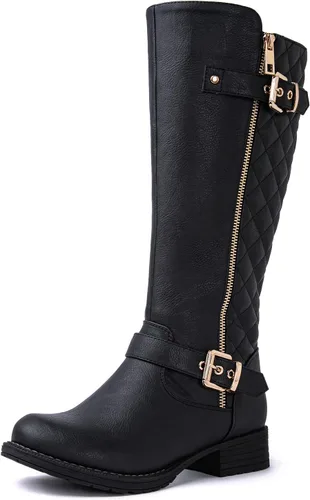 GLOBALWIN Botas altas acolchadas hasta la rodilla para mujer, de tacón bajo, cómodas, a la moda, elegantes, botas de montar para mujer