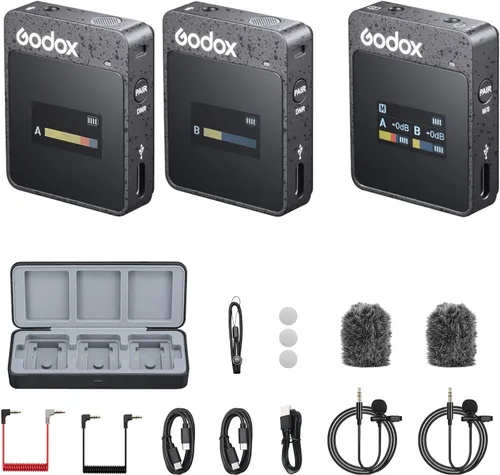¿Para qué sirve Godox MoveLink II M2 Wireless Lavalier Microphone System(2 TX + 1 RX + Charging Case), 2.4G Wireless Noise Cancelling Mic, 100m(328ft) Range for?
