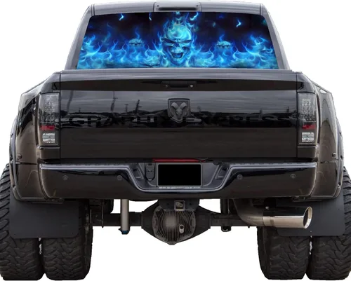 GRAPHIX EXPRESS Gráficos para ventana trasera de camión (P492 Flaming Skull) envoltura de vinilo universal transparente para ventana trasera,