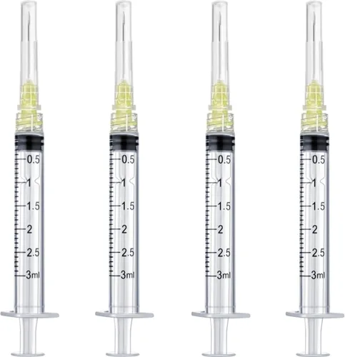 Jeringas de 0.1 fl oz/cc 20ga de 1 pulgada con aguja dispensadora, 50 por caja, suficiente para su uso o reemplazo. Cada artículo está sellado individualmente envuelto, fácil de transportar; escala transparente y marcas de medición para ayudarte a leer y usarlo mejor. Hecho de polipropileno de grado, protegido por una tapa de seguridad que se abre y aprieta para su uso. Empujador suave, diseño a prueba de fugas, fácil de usar. Adecuado para laboratorio de ciencias, análisis químico, aplicaciones industriales precisas de medición y dispensación de líquido. Nota: Adecuado para la industria y la ciencia, experimentos de laboratorio, separadores de perfumes o herramientas domésticas, etc.