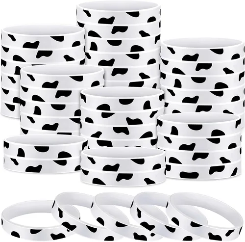 El paquete incluye: 30 pulseras de goma con estampado de vaca, cantidad suficiente para satisfacer tus diferentes necesidades y requisitos de reemplazo, y también te permite compartir con otros Información sobre el tamaño: cada pulsera de goma con estampado de vaca mide aproximadamente 8 x 0.5 pulgadas, adecuada para la mayoría de las personas; el diseño unisex hace que estas pulseras de silicona sean buenos accesorios que combinan con tu disfraz diario Material elástico: las pulseras de goma con estampado de vaca están hechas de goma de silicona con una sensación suave, son resistentes y agradables al tacto, lavables y fiables, se pueden aplicar durante mucho tiempo; también son ligeras y portátiles, por lo que es fácil de transportar y almacenar sin ocupar mucho espacio Práctico cordón: te proporcionamos pulseras de goma con estampado de vaca, que son resistentes a las arrugas, duraderas y fiables de usar durante mucho tiempo, portátiles para que puedas llevar y almacenar sin ocupar mucho espacio Opción de regalo ideal: las pulseras de goma con estampado de vaca son una buena opción de regalo, se pueden dar como regalos de graduación inolvidables a tu familia, compañeros de clase, profesores, amigos y aquellos que aprecias