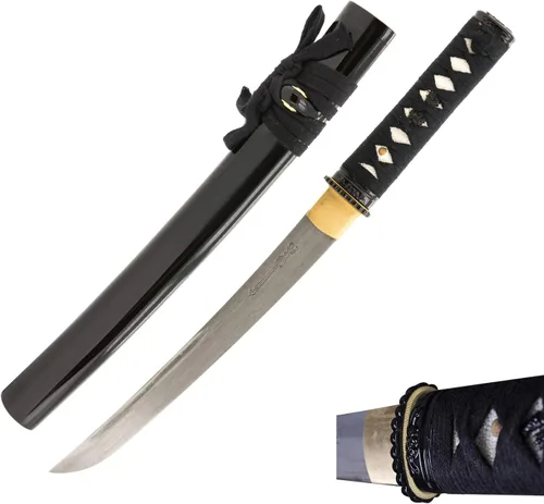 Espada Samurai Tanto afilada Espiga completa, acero al carbono 1045, 10 veces plegado Hierro Tsuba Hoja de aproximadamente 12.5 pulgadas, mango de 6.5 pulgadas y total 21.5 pulgadas Uso para la práctica de corte de artes marciales, colección, decoración