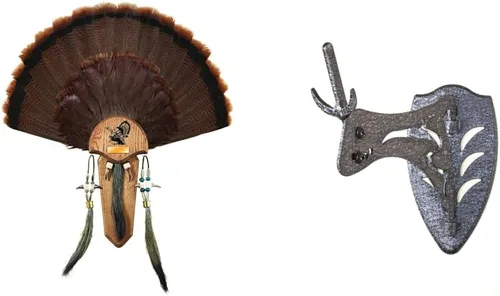 Producto 1: Placa de montaje de tres barbas: la mejor manera de mostrar tus preciados trofeos. Un ventilador de pavo y kit de montaje de barba fácil de bricolaje que te permite añadir un toque innegable de clase a la decoración de tu hogar Producto 1: construcción: la placa con acabado de roble natural tiene un engullidor grabado con láser en el puntal completo que se presenta en la parte delantera y está diseñada para sostener fácilmente el ventilador de cola, la barba y las espuelas de un pavo. Se incluyen ganchos opcionales para montar dos barbas adicionales Producto 1: Fácil de montar: The Hunters Specialties H.S. La placa de montaje Strut Three Beard es tan fácil de instalar, solo tienes que utilizar los tornillos que incluye y ya estás listo. No hay necesidad de ningún montaje o modificación del cráneo Producto 1: lo que incluye: recibirás ganchos opcionales que se incluyen para mostrar dos barbas adicionales, engullidor grabado con láser en el panel principal, placa de nombre de latón grabable, instrucciones detalladas de montaje. Ventilador en la imagen, barba y espuelas no incluidos Producto 2: diseño elegante: el Little Hooker es un enfoque elegante y aerodinámico para colgar trofeos europeos pequeños a medianos; el Little Hooker es completamente personalizable para proporcionar la presentación perfecta y natural de tu trofeo Producto 2: para un juego más pequeño: el colgador de calavera Little Hooker está diseñado específicamente para juegos más pequeños como cerdos, caimán, oso negro, puma, ciervo, antílope y juegos medianos exóticos como gacela, impala y muchas más especies de juegos de trofeos en todo el mundo Producto 2: construcción de acero con recubrimiento en polvo: construido de acero con recubrimiento en polvo fuerte y ofrecido en dos colores llamativos (marrón robusto y negro grafito); partes incluidas: placa de pared (1), brazo (1), clavija (1) y todos los accesorios necesarios Producto 2: sin daños: el Little Hooker no requiere taladrar ni dañar tu cráneo, ya que la punta se ajusta de forma segura y natural en la parte posterior del cráneo. * El cráneo no se puede cortar o alterar alrededor del agujero natural o la articulación cervical en la parte posterior del cráneo