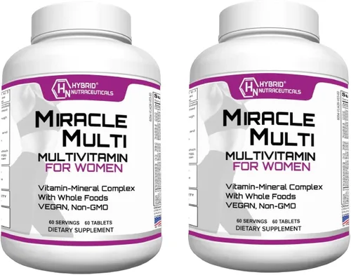Multivitamina de alta potencia para mujer: el multivitamínico milagroso Hybrid Nutraceuticals para mujer es un suplemento mixto de vitaminas y minerales que proporciona las vitaminas, minerales y antioxidantes esenciales para apoyar la salud en general. Apoya la salud inmunológica: este multivitamínico para mujer apoya la salud inmunológica como una fuente de zinc de alta potencia y apoya la salud de los glóbulos rojos y la protección de las células nerviosas. También un gran uno al día para mujeres 50 plus multi. Súper concentrado y ultra potente: la mezcla multivitamínica para mujeres y adultos contiene las vitaminas, minerales, probióticos, enzimas y superalimentos esenciales que el cuerpo de una mujer requiere para un rendimiento máximo. Apoya el cabello, la piel y las uñas: aumenta tu belleza natural de adentro hacia afuera con vitaminas y minerales que apoyan el crecimiento, reparación y regeneración saludables de tu cabello, piel y uñas, incluyendo biotina de alta potencia y vitamina C, vitamina A como beta caroteno natural. Una marca en la que puedes confiar: estamos orgullosos de la calidad y pureza de cada botella de multivitamínico MiracleMulti para mujeres que vendemos. Fabricado en Estados Unidos en una instalación inspeccionada por la FDA bajo estrictos estándares cGMP.