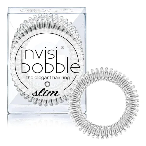 El elegante anillo para el cabello: un toque intrincado a la famosa forma espiral de la banda para el cabello ORIGINAL: este es el invisibobble SLIM. Escondido en un hermoso updo o brillando al sol, Crystal Clear es el favorito de todos. No sacrifiques el estilo para mayor comodidad: gracias a su forma en espiral, el SLIM proporciona una gran comodidad de uso. Dado que la banda para el cabello SLIM no se empapa, es muy higiénica, no se enreda y es suave para el cabello mientras que proporciona un agarre fuerte. Encuentra tu equilibrio: El peinado correcto es tan importante como el atuendo. La cinta para el cabello invisibobble SLIM es la herramienta perfecta para crear fácilmente un peinado ajustado tanto para un peinado de oficina elegante como para un look nocturno rebotado. Muñequera: convertida en una pulsera de moda, la corbata para el cabello invisibobble SLIM es un accesorio colorido y elegante que completa cada atuendo. La colección: The invisibobble SLIM está disponible en siete colores: Crystal Clear, True Black, Chrome Sweet Chrome, Bronze Me Pretty, Stay Gold, Vanity Fairy y Bella Rosa Galaxy que añaden un acabado sutil y elegante a cada estilo. ¡Para un peinado glamoroso y un cabello saludable!