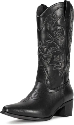 IUV - Botas de cowboy para mujer, con punta puntiaguda, botas vaqueras occidentales para mujer, botas de vaquera a media pantorrilla