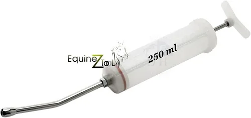 Gran capacidad de 8.5 fl oz para una dosificación eficiente. Diseñada con una generosa capacidad de 8.5 fl oz, esta jeringa de dosificación oral es ideal para administrar medicamentos, suplementos y líquidos a caballos, ganado y otros animales grandes. Perfecto para profesionales equinos y veterinarios que requieren herramientas de dosificación de alto volumen. Cuerpo de plástico duradero con boquilla de acero inoxidable. Cuenta con un barril de plástico de alta resistencia combinado con una boquilla de acero inoxidable mecanizada con precisión para una durabilidad a largo plazo y resistencia a la corrosión. Garantiza la entrega suave y consistente de pasta, gel o medicamentos líquidos durante los tratamientos dentales y veterinarios equinos. Reutilizable y fácil de limpiar: diseñada para uso diario veterinario. Esta jeringa veterinaria es totalmente reutilizable y fácil de desmontar para una limpieza rápida y saneamiento. Construido para soportar un uso riguroso en graneros, establos, clínicas y tratamientos de campo sobre la marcha para animales grandes. Funcionamiento de doble mano y tirador diseñado para uso con dos manos, lo que permite una fuerte acción de tracción que genera una mayor presión para un enjuague y limpieza oral más efectivos. Ideal para el lavado bucal completo en el cuidado equino. Herramienta versátil para aplicaciones de equina, ganadería y dentales: ya sea que estés realizando cuidado dental equino, desparasitación de ganado o administrando suplementos nutricionales, esta jeringa ofrece dosis precisas y controladas cada vez. Una adición esencial a cualquier kit veterinario o colección de herramientas agrícolas.