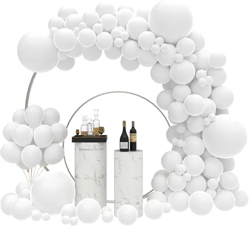 JOYYPOP Globos blancos, 130 unidades, kit de guirnalda de globos blancos, diferentes tamaños, 5, 10, 12, 18 pulgadas, globos blancos para boda