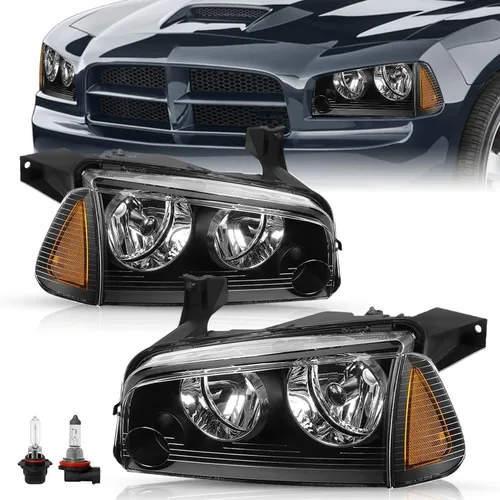 TUSDAR Juego de 4 piezas de conjunto de faros delanteros halógenos Compatible con faros delanteros y luz de esquina lateral para Dodge Charger