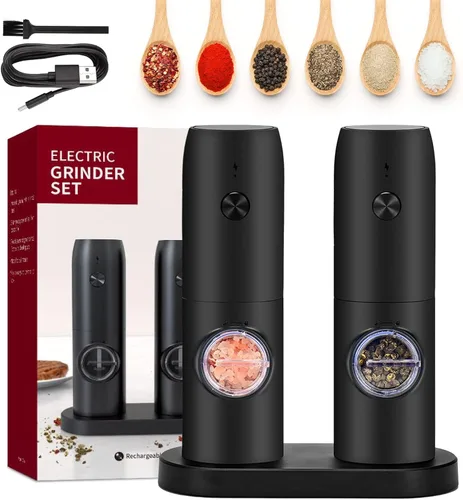 Pregunta sugerida sobre Juego de molinillo eléctrico de sal y pimienta, salero y pimentero automático, grosor recargable y ajustable, operación con una mano, molinillo ¿Qué incluye exactamente este set?