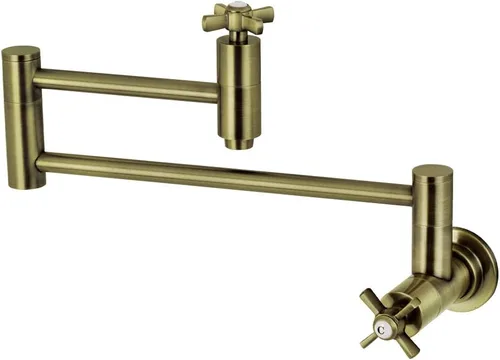 El estilo ecléctico del estilo Art Deco de los años 30 se integra dentro del diseño clásico de este grifo. Como una excelente herramienta para llenar ollas de forma rápida, fácil y elegante, elimina la tensión en tus articulaciones. Los rellenos de ollas son dispositivos útiles colocados directamente encima de la estufa, proporcionando agua de fácil acceso. Los brazos abatibles plegables de este relleno de ollas permiten un alcance extensible de hasta 20 pulgadas de longitud y proporcionan una función duradera debido a su construcción de latón resistente. Además, las asas dobles evitan derrames de agua no deseados mientras mejoran el tema moderno.