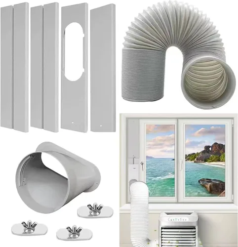 Descripción del producto Características: Tamaños: Traje para manguera de escape de 5.1 pulgadas de diámetro Materiales duraderos: kit de ventana de aire acondicionado portátil hecho de material de PVC duradero resistente al calor Bien diseñado: kit de ventilación portátil para ventana de aire acondicionado, placa ajustable que se adapta a diferentes alturas de ventana. Ámbito de aplicación: kit de sellado de ventana de CA portátil adecuado para su uso en casa, oficina, aula, dormitorio y más lugares. Pasos para el uso 1. Instala los accesorios de tornillo y tuerca en la placa exterior para montar, inserta la pieza de metal ovalada en la pista y aprieta la tuerca. 2. Instale la placa de ventana ensamblada en la ventana 3. Instale un extremo de la manguera de escape en el acoplador del aire acondicionado portátil. 4. Instale el otro extremo de la manguera de escape en el adaptador universal 5. Instala el adaptador en la interfaz del panel de la ventana y estará listo para usar.