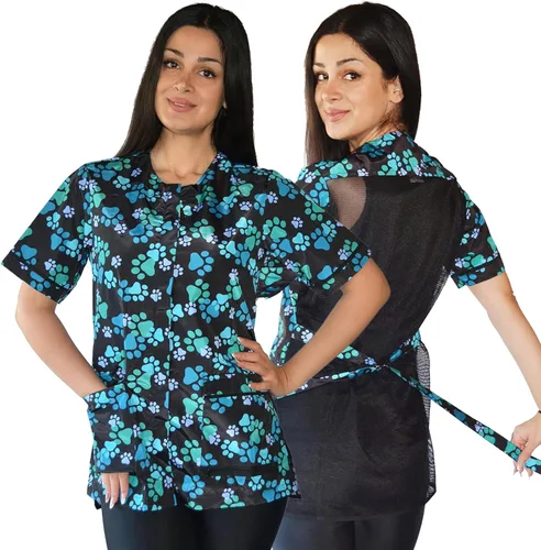 Mantente limpio y cómodo: diseñado para peluqueros de mascotas ocupadas, esta bata de peluquero para perros de Ladybird Line cuenta con tela impermeable y resistente al cabello para mantener tu ropa limpia y seca. Su material ligero garantiza comodidad durante todo el día, por lo que es una chaqueta de trabajo imprescindible para tareas exigentes. Práctico diseño de lazo trasero y malla: disfruta de un ajuste cómodo y ajustable con esta bata de aseo para peluqueros de perros. El lazo trasero garantiza que se mantenga en su lugar de forma segura, mientras que el diseño de malla transpirable mejora el flujo de aire, manteniéndote fresco y cómodo mientras te mueves libremente mientras manejas mascotas. Su ajuste a medida añade un toque pulido a tu look. Estilo llamativo: destaca con el encantador diseño de huellas azules. Esta elegante bata para mujer funciona como una pieza funcional pero a la moda, dándote confianza en tu apariencia profesional, ya sea durante sesiones de aseo personal o interacciones con los clientes. Ropa de trabajo fácil de cuidar: simplifica tu rutina después del trabajo con esta opción de exfoliantes de aseo para mascotas de bajo mantenimiento. Lavable a mano en agua fría y de secado rápido, esta bata de aseo es duradera y lista para mantenerte elegante día tras día. Opciones de tamaño versátiles: logra el ajuste perfecto con nuestras camisetas de aseo reales para mujer. El diseño a medida complementa cualquier forma, y para mayor comodidad, se recomienda una talla más grande. Consulta la tabla de tallas para obtener una guía clara adaptada a tus necesidades.