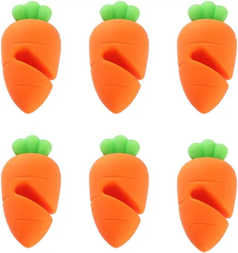 Características: 1. Bonito diseño en forma de zanahoria, creativo y elegante. 2. Puedes fijar al borde de la olla y deslizar la cuchara en el soporte. 3. Haz que la mesa de la cocina ya no se vea desordenada. 4. Silicona resistente al calor, segura, no tóxica y respetuosa con el medio ambiente. 5. Reutilizable, muy adecuado para los amantes de la cocina. - Condición: 100% nuevo. - Color: Como se muestra - Material: silicona de grado alimenticio - Tamaño: aproximadamente 2.2 x 1.2 x 1.2 in / 2,1 x 1,2 x 1,2 pulgadas, El paquete incluye: 6 tapones para derrames de zanahoria.