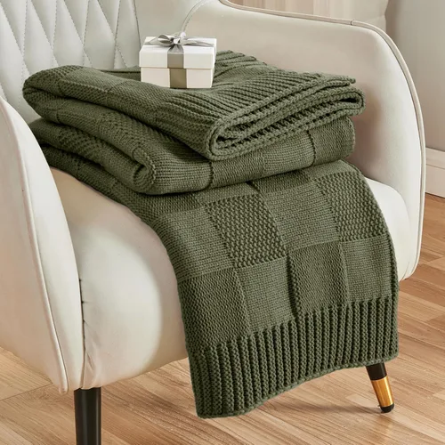 CozeCube Manta de Punto a Cuadros, Manta a Cuadros Verde Oliva para Sofá, Manta Decorativa Navideña Suave Acogedora y Cálida de Punto para Cama Sofá
