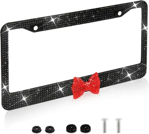 Este marco de matrícula de diamantes de imitación de lujo con más de 1000 cristales de diamantes de imitación de color real realmente alegrará tu viaje Haz que tu coche se vea más lujoso y especial que otros. - Siéntete más seguro al conducir. Recibe elogios y cumplidos de tus amigos y familiares. Un regalo brillante ideal para tu amiga. Cómo instalar: 1. Coloca la arandela en la posición adecuada, luego coloca los tornillos a través de la arandela y aprieta contra tu vehículo. 2. Coloca la tapa a presión sobre la arandela. 3. Presiona la tapa a presión firmemente hacia abajo hasta que se enganche con un clic.