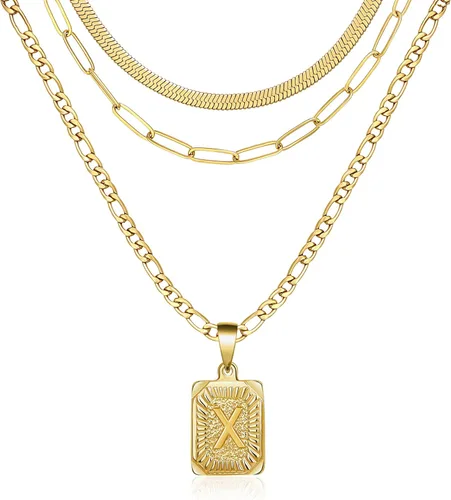Memgift Juego de collar en capas de oro, 3 piezas para mujeres y niñas, delicada gargantilla de serpiente con clip de papel, cadena Figaro de acero