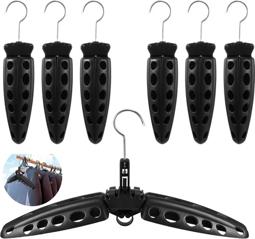 Abundante cantidad de paquete: nuestro paquete viene con 6 accesorios de surf, para satisfacer tus diversas necesidades; ya sea que necesites colgar varios trajes de buceo o equipo de buceo, este juego asegura que siempre tendrás suficientes perchas a mano Versatilidad en la aplicación: más allá del equipo de buceo, este colgador de buceo es lo suficientemente versátil como para manejar una gama de accesorios al aire libre; desde trajes de neopreno, reguladores, hasta ropa de playa o ropa diaria, simplifica tus aventuras al aire libre o tareas de buceo profesional con este práctico accesorio, prometiendo mantener tu equipo organizado y accesible Garantía de calidad: este colgador para traje de neopreno está fabricado con material plástico de calidad, asegurando durabilidad y longevidad; a pesar del uso diario o la exposición prolongada al agua, ten la seguridad de que su robustez no disminuirá; su color negro añade aún más un toque de elegancia a tus accesorios para exteriores Características inteligentes del orificio de drenaje: estos accesorios de buceo cuentan con una característica inteligente, agujeros de drenaje; adecuados para colgar equipo de buceo húmedo, estos agujeros permiten que el exceso de agua se drene eficientemente, promoviendo un secado más rápido y evitando daños a tu precioso equipo debido al agua residual Innovador diseño plegable: una característica destacada de nuestros accesorios de buceo que los distingue es su característica plegable; con un tamaño de aproximadamente 20 pulgadas/20.1 in después de ser desplegados, proporcionan un amplio espacio para colgar; sin embargo, cuando no es necesario, se pliegan fácilmente a un tamaño compacto para almacenamiento y transporte