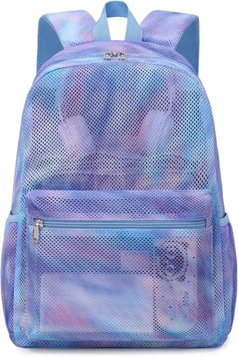 Mochila de malla, duradera y ligera: la mochila escolar semitransparente está hecha de malla de poliéster resistente, duradera y transpirable, que puede soportar el desgaste intenso del uso diario. Y esta mochila para niñas tiene correas acolchadas para llevar artículos más pesados sin romperse fácilmente. Mochila ligera que hace que sea más fácil de llevar. Mochila de malla transparente, mochila multiusos: adecuada para todo tipo de lugares de trabajo que necesitan una mochila transparente, y puede pasar rápidamente los controles de seguridad. Puedes llevar la mochila de playa de malla a la playa y la piscina, y puedes manejar la playa, arena, toallas húmedas y todo lo demás que lleves en la orilla y en la piscina. Mochila de malla para niñas, gran capacidad: nuestra mochila de malla transparente tamaño: 11.8 x 5.9 x 16.9 pulgadas (largo x ancho x alto). que es lo suficientemente grande como para contener todas tus necesidades diarias, puede contener portátiles de 15.6 pulgadas, libros, toallas de playa, ropa, etc. También hay un bolsillo con cremallera dentro de la mochila que puede contener objetos pequeños, llaves, teléfonos, cambios, etc. 1 bolsillo frontal para objetos pequeños y 2 bolsillos laterales para una botella de agua o paraguas. Regalo ideal para tu amor: puedes obtener esta mochila como regalo perfecto para tu familia o amigos e hijos, estarán absolutamente enamorados de ella, esta mochila especial se puede utilizar para el gimnasio, playa, viajes, escuela, piscina, senderismo, compras de yoga u otras actividades. Servicio posventa: para permitirle tener una experiencia de compra agradable, disfrutará de una garantía de 180 días, reemplazo de 90 días, devolución gratuita de 7 días y otros servicios después de la compra. Si es necesario, ponte en contacto con el servicio al cliente de la tienda. Recomendado para niños de más de 8 años.