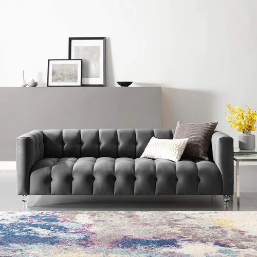 | Tipo de Cama o Colchones | Sofá tapizado de terciopelo de rendimiento con botones capitoné de canal con patas acrílicas |