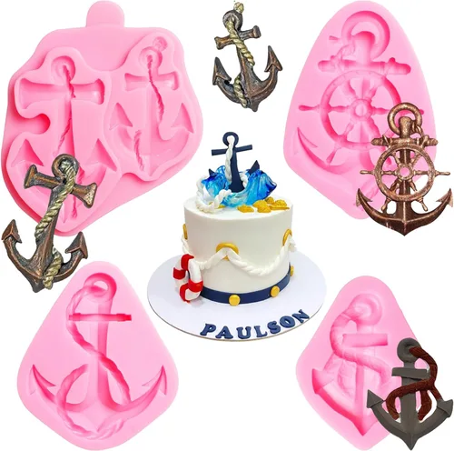Moldes de silicona para fondant, moldes para hornear chocolate con ancla de barco para decoración de pasteles, decoración de cupcakes, caramelo,