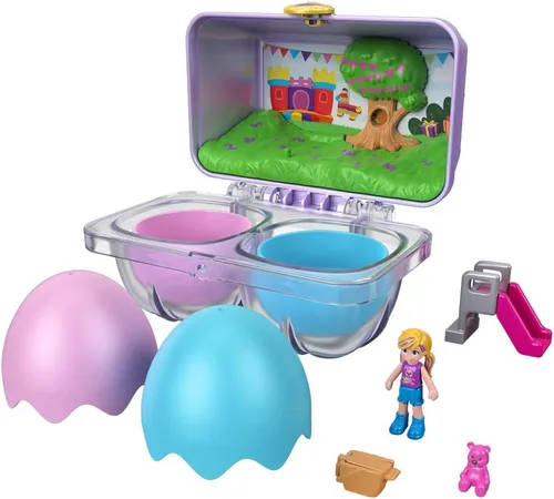 Celebra las fiestas con los adorables juegos Polly Pocket Egg Doll y accesorios que vienen en un paquete inspirado en cartón de huevos