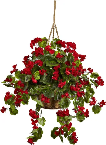 Nearly Natural 6857-RD Cesta colgante de geranio resistente a los rayos UV, rojo y 10.125 x 29 x 10.125 pulgadas de 28 x 28 x 28 pulgadas