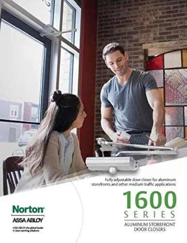 Norton 1604BC Series, grado 1 certificado y UL / cUL para su uso en puertas con clasificación contra incendios y prueba de fuego de presión positiva. Cumple con la ADA. Recomendado en puertas interiores o exteriores comerciales, incluyendo: Escaparates de aluminio, puertas de oficina, armarios utilitarios y salas de almacenamiento. Sin manos para la instalación en puertas batientes a la derecha o izquierda. Supera los 25 millones de ciclos. Cubierto por el programa de reciclaje al final de la vida útil de Norton Garantía limitada de 25 años