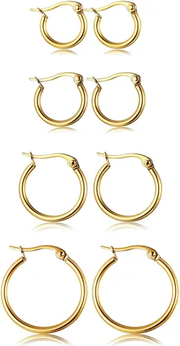 ORAZIO 4 Pares de pendientes de argollas de acero inoxidable. Pendientes tipo argolla plana para mujer, de 10-20 milímetros.