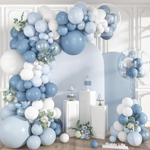 Pregunta sugerida sobre Ouddy Life Kit de guirnalda de arco de globos azul polvoriento, 152 piezas de arco de globos azul claro y blanco, globo transparente azul pastel ¿Este producto sí me sirve para lo que necesito?