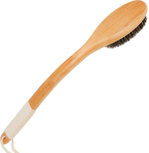 Cerdas esterilizadas: El pelo exfoliante de mango largo fue crin de caballo esterilizado, seguro e inofensivo. Este cepillo corporal mejora la fricción con la piel y elimina la suciedad y la piel muerta de la piel de manera efectiva; el mango está hecho de material de madera natural, es antideslizante, impermeable, a prueba de humedad, saludable e insípido. Diseño de mango largo curvado de bambú: este cepillo exfoliante OWIIZI tiene un mango extra largo hecho de madera de más de 17.7 in (17.9 pulgadas) de largo, es fácil de usar ya sea húmedo o seco, y se puede lavar la espalda incluso todas las partes del cuerpo fácilmente. Además, hay un agarre antideslizante para atar cuerdas y una cuerda para colgar en el mango. Efecto: Transforma tu rutina diaria de ducha con el cepillo exfoliante de baño de OWIIZI. Disfruta de la mejor experiencia de baño con el exfoliante corporal de OWIIZI. Perfecto para llegar a tu espalda y exfoliar tu piel, eliminar la suciedad del sudor y el aceite, aliviar la fatiga. Cepillo de baño profesional apto para mujeres, hombres y ancianos. Diseño antideslizante: hay un agarre antideslizante de cuerdas y una cuerda para colgar en el mango del cepillo de baño de cerdas, muy cómodo y seguro de usar. Límpialo después de su uso, cuélgalo en un lugar ventilado y sécalo. Frecuencia de uso: Recomendamos usarlo 2-5 veces/semana para obtener mejores resultados (las personas pueden ajustarse según su propia situación), y reemplazar el cepillo cada 6-8 meses.