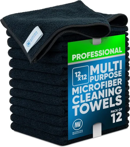 Paños de limpieza de microfibra Pro multisuperficie de 12 x 12 pulgadas Negro - Paquete de 12 Toallas de microfibra premium para limpiar vidrio