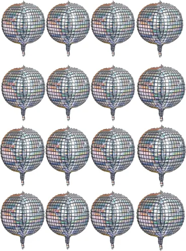 Paquete de 16 globos de bola de discoteca de 22 pulgadas con láser plateado 4D, gran esfera inflable de aluminio, globo de espejo plateado