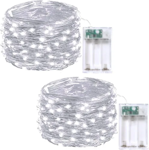Paquete de 2 guirnaldas de luces LED, funcionan con pilas, 5 m, 50 luces intermitentes, temporizador, impermeables, para habitaciones, bodas