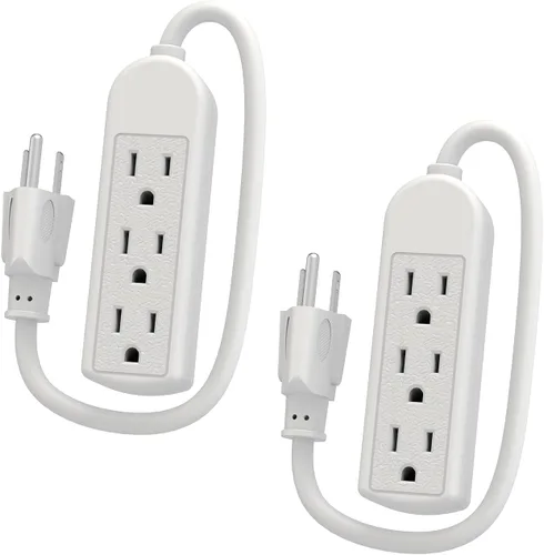 Paquete de 2 regletas de alimentación de 3 clavijas, color blanco delgado, 3 tomas de tierra, cable de alimentación de extensión resistente de 1
