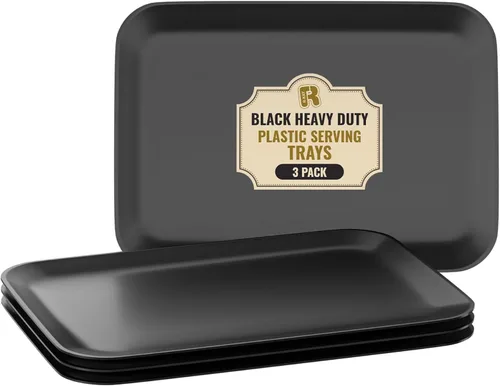 ¿Para qué sirve Paquete de 3 bandejas de plástico negro para servir – Bandeja negra de 8 x 11 pulgadas – Bandejas de postre resistentes para alimentos – Bandejas?