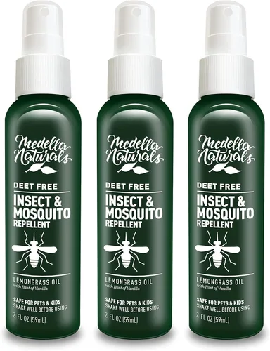 SPRAY REPELENTE DE INSECTOS SIN DEET – A diferencia de los aerosoles repelentes de insectos con DEET, Medella te protege de mosquitos, mosquitos negros, mosquitos no visibles y mosquitos usando aceite esencial de limoncillo – sin ingredientes dañinos. Nuestro spray repelente de insectos también es no inflamable y seguro para el césped. Aerosol para insectos que huele agradable: el spray para mosquitos Medella tiene un aroma de gran olor que te encantará, huele a hierba de limón con un toque de aroma a vainilla. Tampoco deja residuos molestos y pegajosos después de rociarlo sobre la piel. Seguro para mascotas y niños: dado que nuestro spray antiinsectos para exteriores está libre de ingredientes nocivos, es seguro de usar en mascotas y niños cuando se utiliza según las indicaciones. Es el repelente definitivo para mosquitos e insectos que puedes usar para que toda la familia pueda disfrutar del aire libre. Probado para funcionar: protégete de los insectos con un producto respaldado por estudios. En un estudio, nuestro repelente de insectos repelió el 90% de las moscas negras y jejenes hasta 5.5 horas después de la aplicación. Apto para viajes: el repelente de insectos y mosquitos Medella viene en 3 tamaños prácticos: 2 onzas, 4 onzas y 8 onzas. Nuestro spray anti insectos, especialmente el tamaño de 2 oz, puede caber fácilmente en bolsas de golf, cajas de aparejos, mochilas y más.