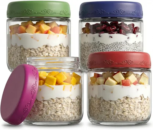 Pregunta sugerida sobre Paquete de 4 de 10 OZ, Tarros para Avena Nocturna con Tapas, Recipientes de Vidrio para Preparación de Comidas, Tarros Mason Herméticos ¿Qué incluye exactamente este set?