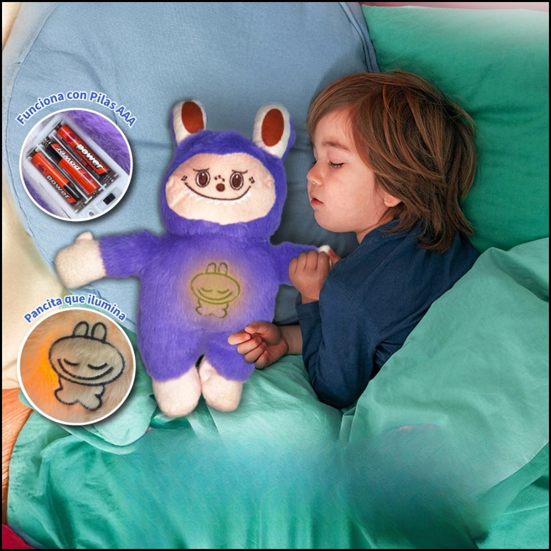Pancita que se Ilumina: El peluche tiene una pancita que se ilumina con una luz suave para reconfortar al niño en la oscuridad.