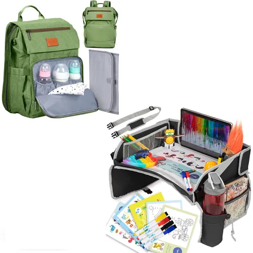Paquete de viaje: bandeja de viaje para niños y bolsa de pañales
