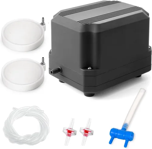 Bomba de aire PONDFORSE - La bomba de aire PONDFORSE funciona solo 20 vatios necesarios, ofreciendo 30 litros de aire por minuto, voltaje de 120 V 60 Hz, capaz de funcionar para múltiples piedras de aire y filtros de esponja Bomba silenciosa: la bomba de aire es accionada por rodamientos magnéticos. Con cubierta de plástico grueso, sellado bloquea el sonido del motor. Es tan silencioso sin zumbido fuerte que tienes que poner la cabeza cerca de él y apenas puedes escucharla Flujo de aire ajustable: el flujo de aire se puede ajustar girando la perilla de control de acuerdo a tu preferencia, adecuado para múltiples tanques. La bomba de aire es potente, conectándose con la piedra de aire, bombeando salida increíble Amplia gama de aplicaciones: diseñado para satisfacer los requisitos de una multitud de aplicaciones relacionadas con el agua. Perfecto para múltiples acuarios, peceras, sistema hidropónico oxigenante Eficiencia energética: con durabilidad y fiabilidad, adoptando electrónica innovadora, supera en volumen y ahorro de energía, consumiendo menos de la mitad de la energía de la misma bomba de capacidad