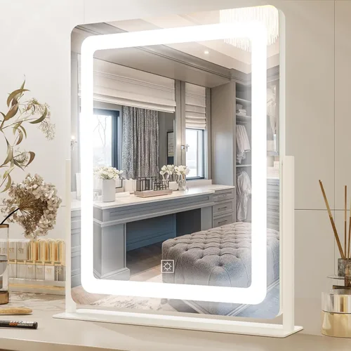 PRIMETEK Espejo de tocador con luces, espejo de maquillaje grande de 19 x 22 pulgadas con luces, espejo de maquillaje iluminado LED, pantalla táctil