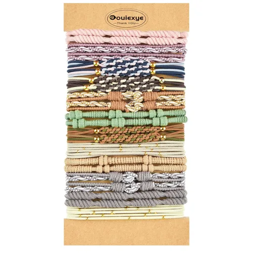 Lo que obtienes: Recibirás 24 gomas de pelo boho con 5 estilos diferentes y 12 colores diferentes, también tenemos otras gomas de pelo con diferentes estilos, colores y cantidades para que elijas Material de primera calidad: Nuestros accesorios para el pelo boho están hechos de nylon suave y elásticos de primera calidad en el interior, suaves al tacto, y se pueden quitar fácilmente sin roturas ni dolor, varios accesorios para el pelo boho también son muy bonitos cuando se usan juntos como decoración para las manos No daña el cabello: puedes usar la cinta para el cabello trenzada para fijar el cabello grueso y las colas de caballo durante mucho tiempo, conveniente y fácil de quitar, y no dañará el cabello en absoluto, estas pulseras de cintas para el cabello boho son adecuadas para hacer todos los estilos de peinado Adecuado para cualquier ocasión: estos ganchos para el cabello de mujer están llenos de estilo bohemio, son elegantes, simples y lindos, adecuados para cabello grueso así como para colas de caballo, ya sea que ates tu cabello o lo lleves en tu muñeca, te harán destacar entre la multitud Servicio: Por favor, póngase en contacto con nosotros si hay algún problema allí, nos pondremos en contacto con usted con una solución satisfactoria dentro de las 24 horas