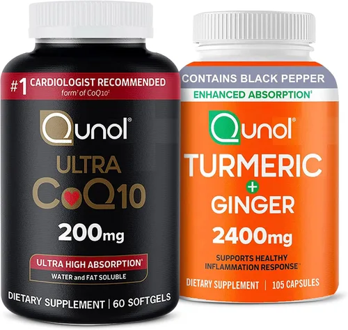 Qunol CoQ10 y cúrcuma: CoQ10 200 mg, 60 cápsulas blandas y curcumina de cúrcuma, 2400 mg, 105 cápsulas