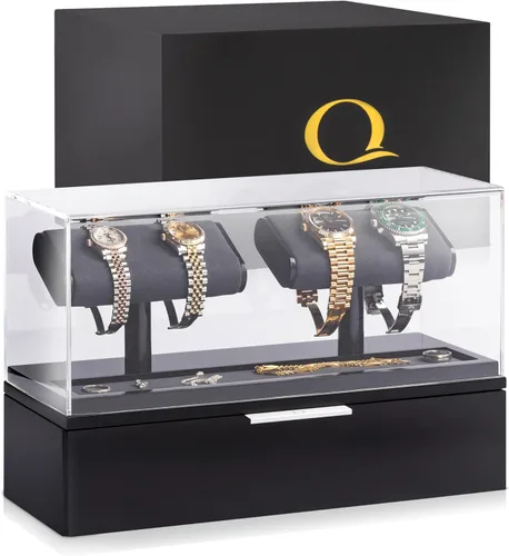 QWATCH - Caja de acrílico para 2 o 4 relojes con bandeja de valet de joyería y cajón