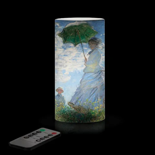 RainCaper Luz LED parpadeante sin llama de 6 pulgadas de cera de pilar Artist Monet Mujer con sombrilla Funciona con pilas Control remoto